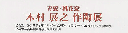 | 木村展之 作陶展 ◆2015年 3月 4日(水)〜10日(火) ◆高島屋京都店 6階美術画廊 |