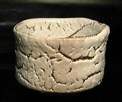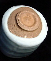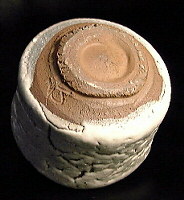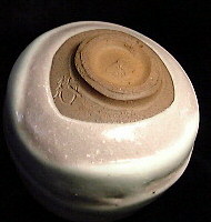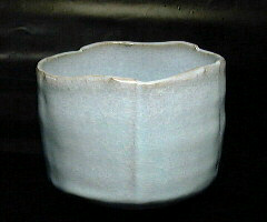 月白釣窯茶碗 青磁の中で青く乳白したも の をこう命名されています。 氷裂のような貫入が特徴で す。茶碗で気を入れている のは勾台と口造り、作家の 力量がはっきりでるので難 しいです。 |