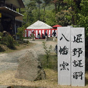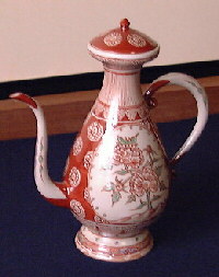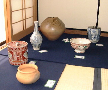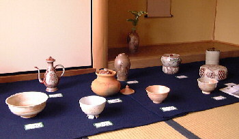 八幡窯 堀野証嗣 八幡窯は染付・赤絵・安南・ 焼締による上品な茶陶が見 所。特に水切れが鮮やかな 赤絵の古萬古水注がご自慢 の作。 奥様が丁寧に説明してくれ、 庭では野点も催されていた。 |