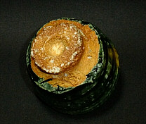 | 表に二本の胴紐、その間を縦横の線文で装飾し陰影を付け、メリハリの利いたタンパンと |