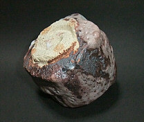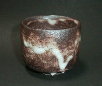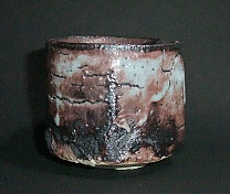| けがまるで寂寥感漂う山水画の趣を漂わせる鼠志野。釉の縮れやハゼも見所となっている。2010 |