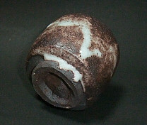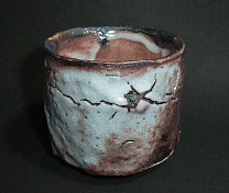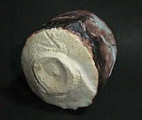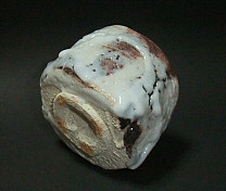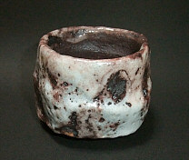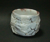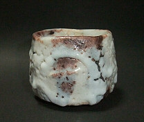 | さん、個展の度にインパクトをある新作を楽しませてくれる。今年の一点は、志野釉の白と鬼板の焼 |