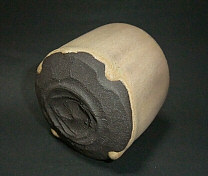 | による微妙な発色が興味深い作品、筒型で飾り気のない造形 |