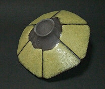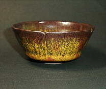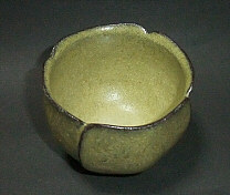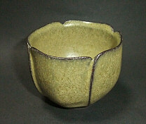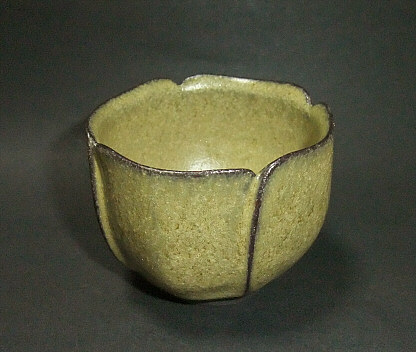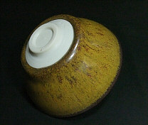 | 表作は黒い胎土にオリジナルの黄瀬戸釉を施し、黄褐色に仕上 |
