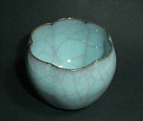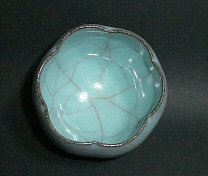 | い、内外に現れる氷裂貫入、高台際でピタッと止まった釉、気品たたえる輪花の |