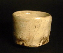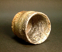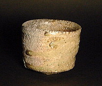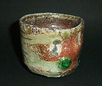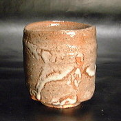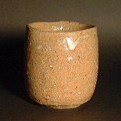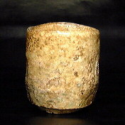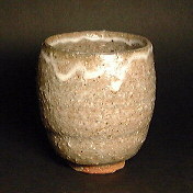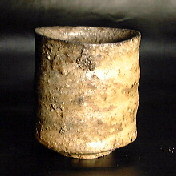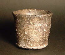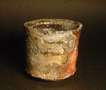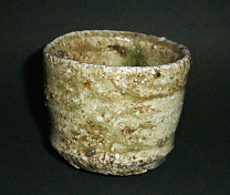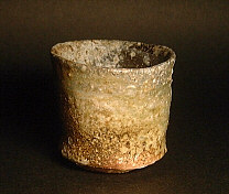 | された長石釉と反応して落ち着きと深みに明る | 戸唐津風に仕げた筒湯呑である。胎土に混じっ | |||||