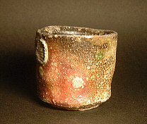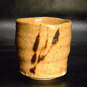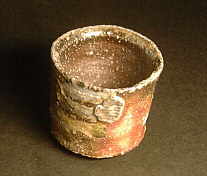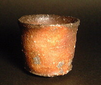 | 深い薪窯焼成の焼〆ぐい呑み。なだらかな変化を持 |