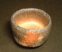 | 細かな石英粒が混じる褐色の器体は、上掛け | 淡い朱色に焼ける土に薄く長石釉を掛け、井 | |||||