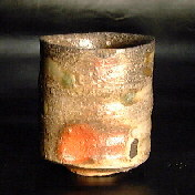 | 釉の色合いや、さり気ない鉄絵が落ちついた味わいで、 | 成で荒々しくも素朴な伊賀焼を持ち味とする作者の軽快な | ||||||||